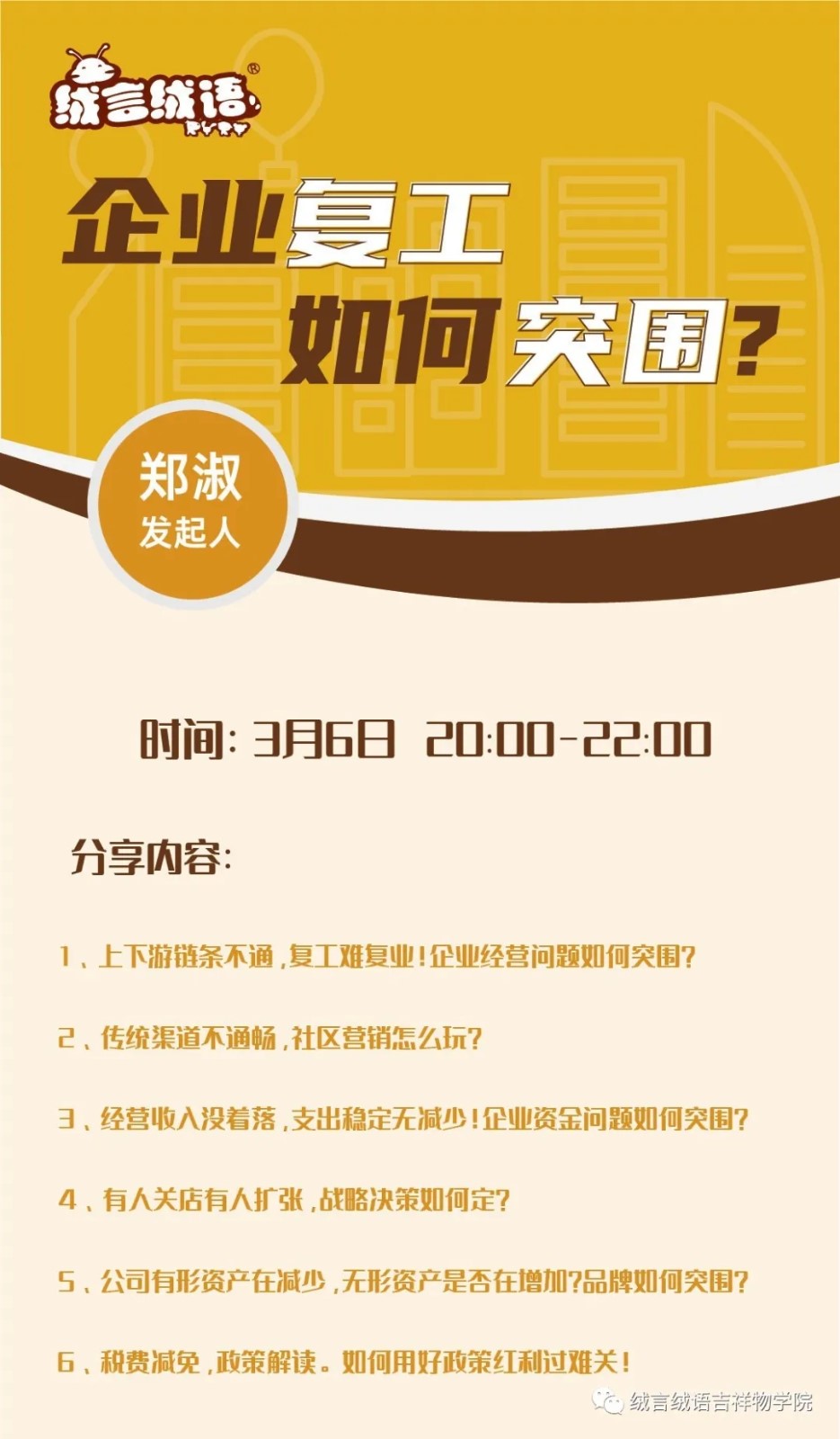 《企业复工如何突围》分享会欢迎您参加