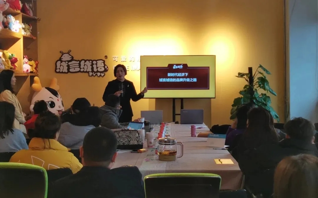 此次游学活动,绒言绒语董事长郑淑分享交流的课题也正是[新时代经济下,绒言绒语的品牌升级之路],即如何借助IP的形式,把握市场新趋势,实现品牌升级再造!