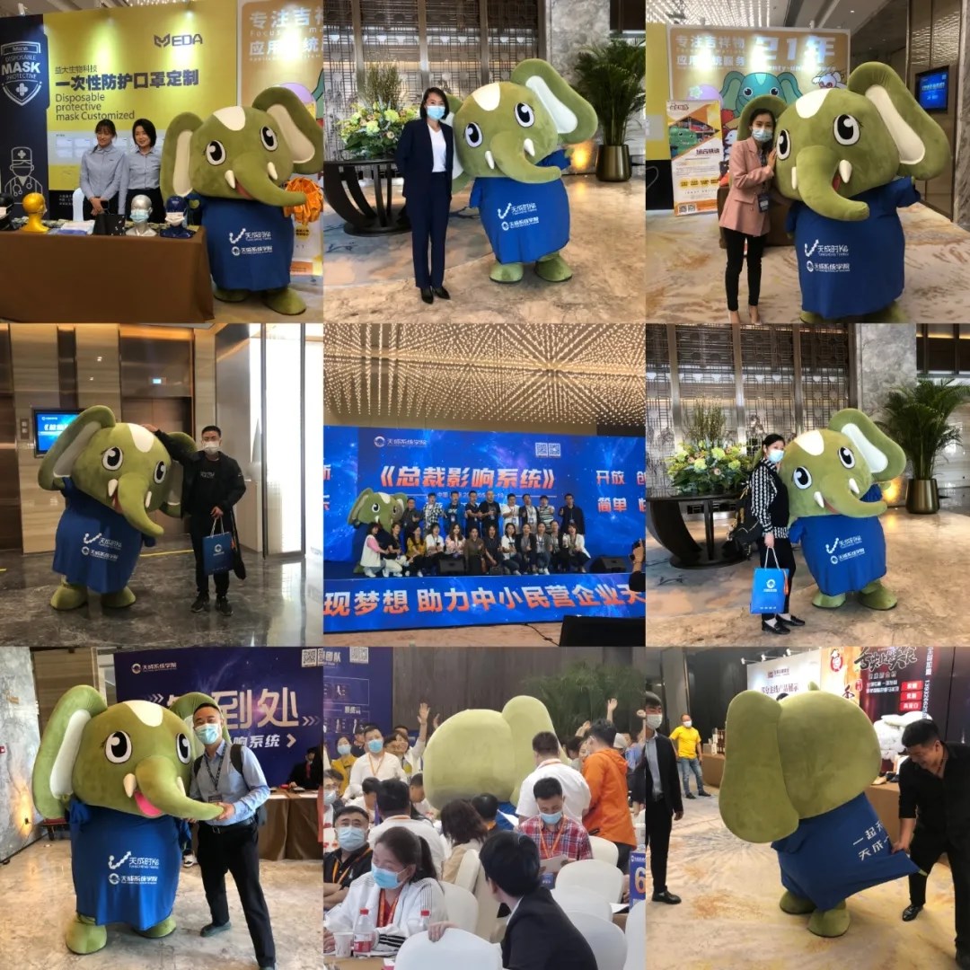 天成总裁系统学院集合了一批有情怀、有能力、有结果的企业家及国际企业精英,致力于服务中小民营企业系统升级,发展裂变,让天下所有的企业高效运行。此次与河南萌物大象奔奔联合,掀起了吉祥物互动交流的新形势,活动现场取得了非常不错的传播效果。