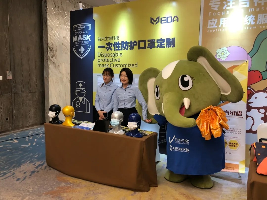 在随后的参展商产品展示活动中,凭借呆萌可爱的形象,大象奔奔合影邀约不断,现场变身活动小明星,受邀为多家展商站台,其中包括益大生物科技防护口罩、金辉云酒货仓、河北涞水文玩核桃等,妥妥的“人气王”+“氛围王”!